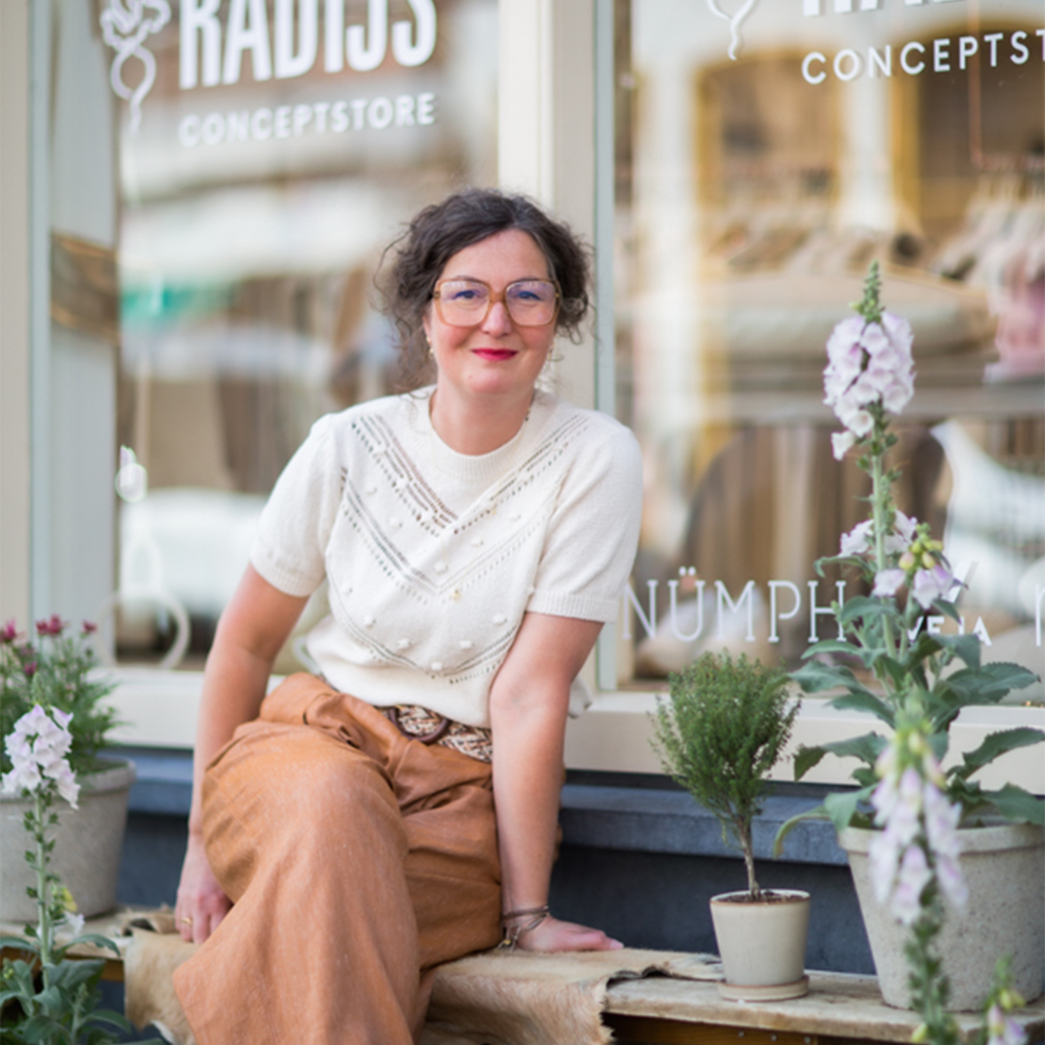 Esther Maria is de eigenaresse van Radijs Conceptstore in Zutphen. Na jaren ervaring als ontwerper was het in 2015 tijd voor een volgende stap. Al snel groeide Radijs uit tot een grote winkel en kledingmerk. Een plek waar duurzaamheid, stijl en inspiratie samenkomen.