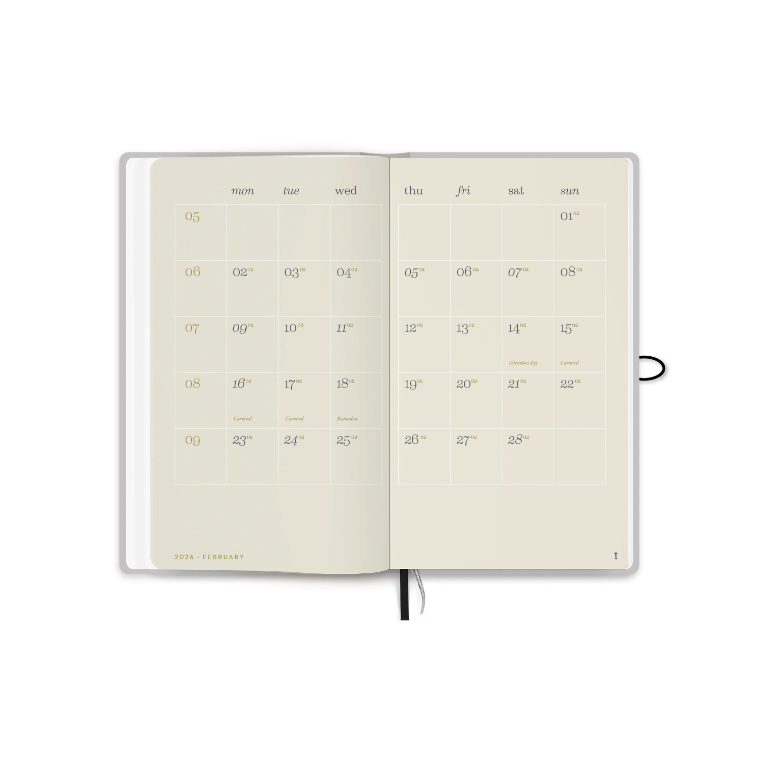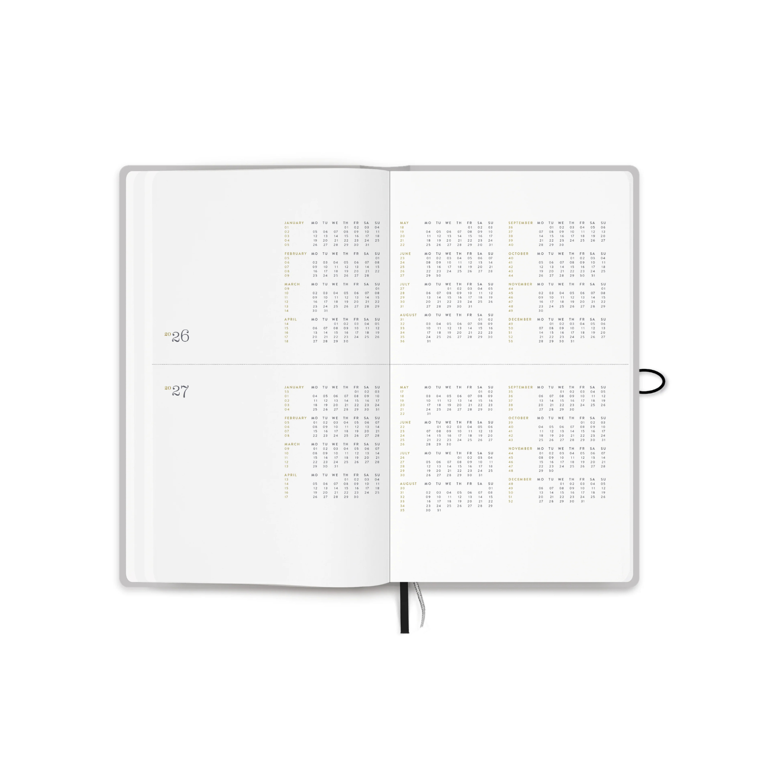 Binnenin vind je een overzichtelijke week- en maandindeling, gedrukt op zacht crèmekleurig papier dat prettig schrijft. De Tinne+Mia Blueprint agenda is FSC-gecertificeerd, wat betekent dat hij op verantwoorde wijze geproduceerd is. Bovendien zorgen de twee lintjes ervoor dat je moeiteloos tussen belangrijke data kunt wisselen.