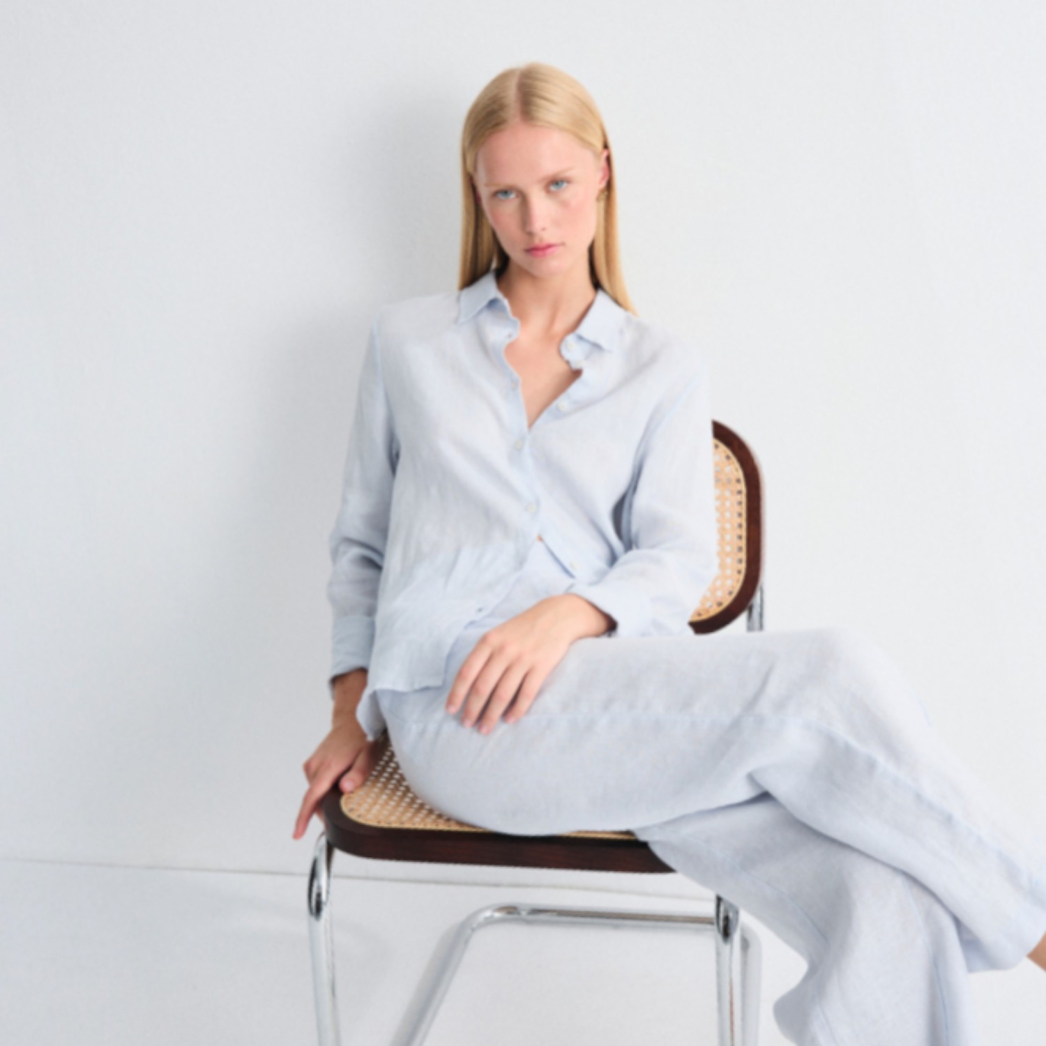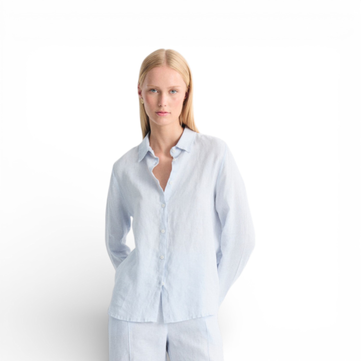 Dankzij het tijdloze ontwerp is dit longsleeve shirt ideaal voor zowel casual als geklede outfits. Combineer het met een pantalon, jeans of rok voor een stijlvolle, moeiteloze look. De zachte blauwe tint laat zich prachtig mixen met neutrale aardetinten, wit en zachte pastels.