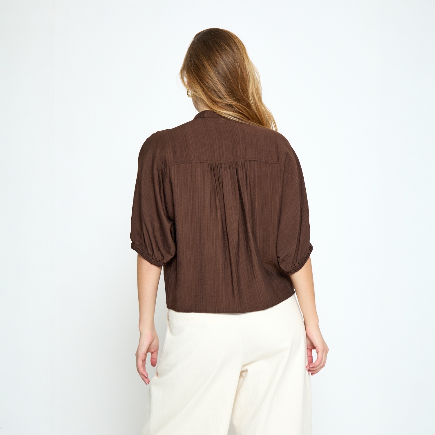 Bruine blouse met korte mouwen