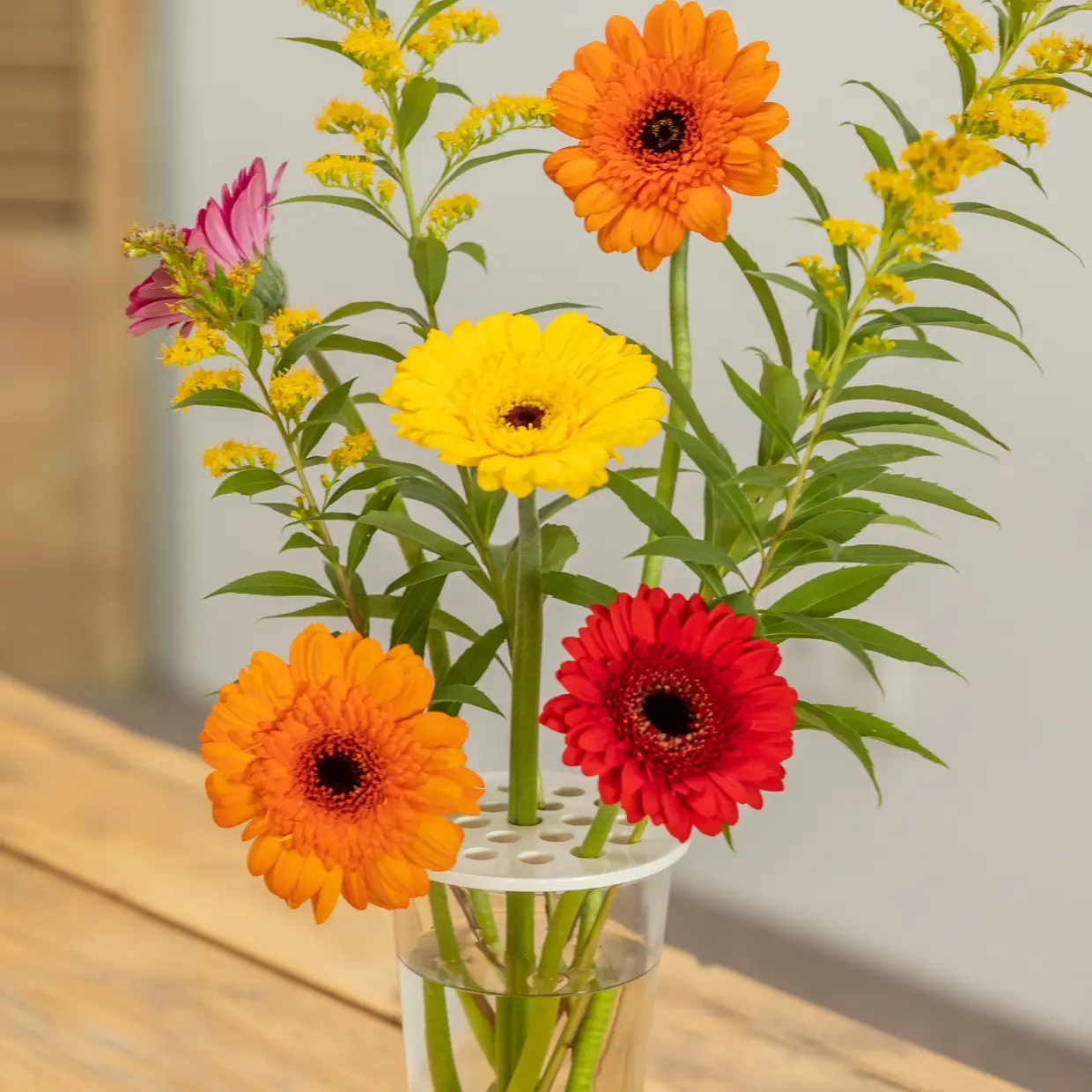 Plaats de bloemenschikker op een passende vaas en steek bloemen en takken eenvoudig door de openingen. Zo blijven ze mooi op hun plek en creëer je moeiteloos een speels en evenwichtig boeket. Ideaal voor losse veldbloemen, droogbloemen of takken uit eigen tuin. Met deze bloemenschikker maak je van elk arrangement een klein kunstwerk.