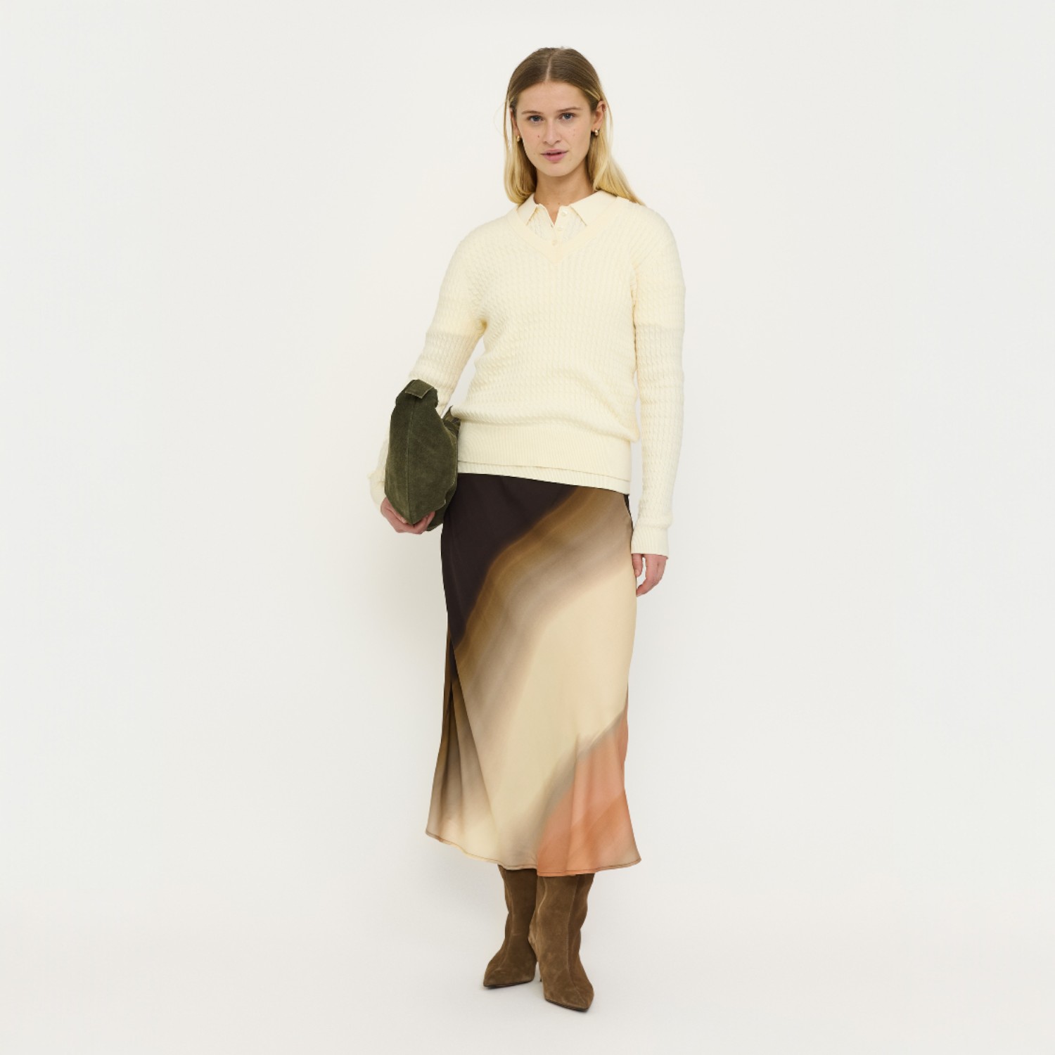 De Cassandra Midi Skirt is eenvoudig te stylen voor verschillende gelegenheden. Combineer de rok met een effen T-shirt of knit voor een rustige look, of draag hem met een blouse voor een meer geklede uitstraling. Dankzij de warme kleurcombinatie laat deze rok zich mooi combineren met neutrale tinten zoals crème, beige en bruin.