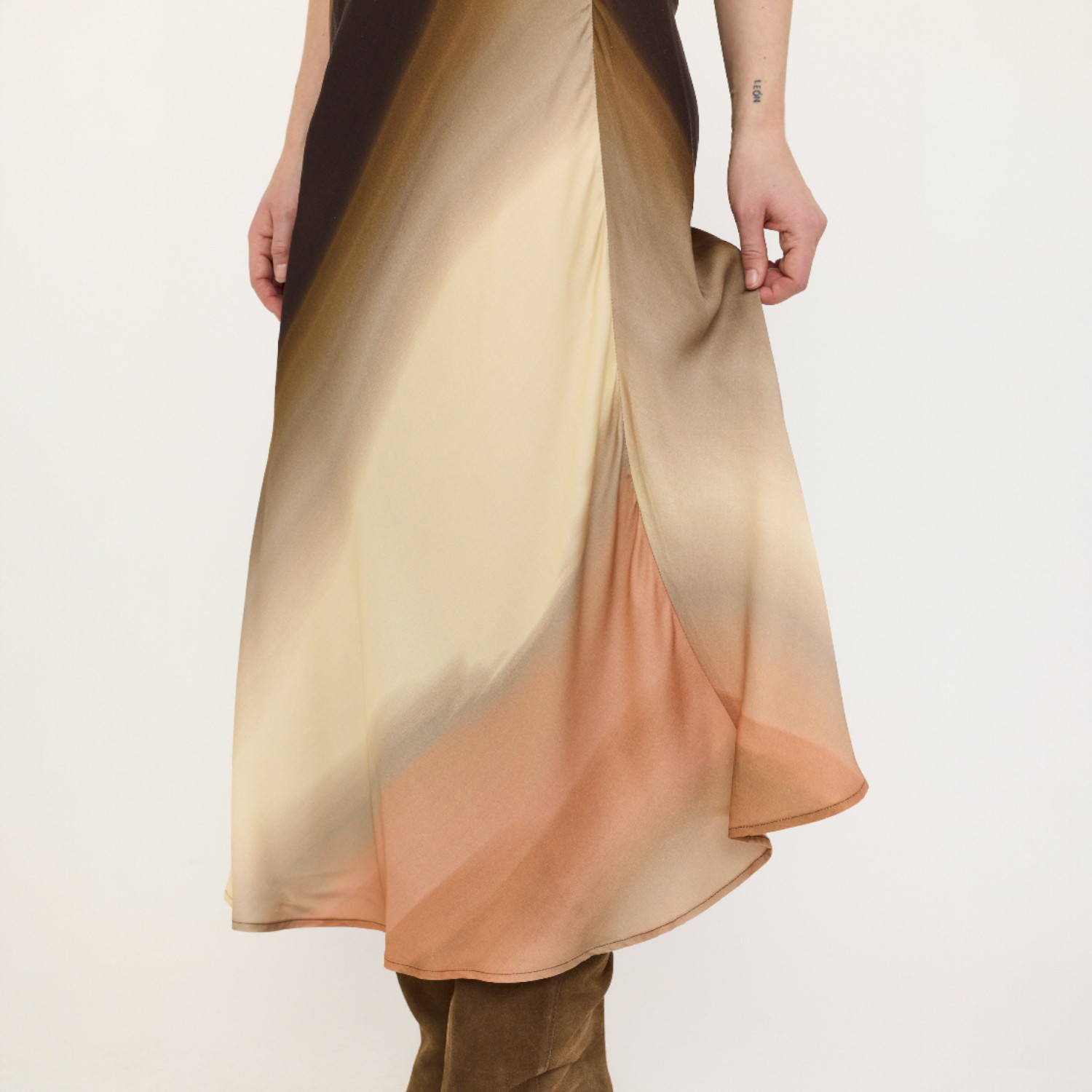 De Cassandra Midi Skirt Sunrise Print van Soft Rebels is een stijlvolle dames midi rok met een warme en opvallende uitstraling. De Sunrise print combineert tinten roze met licht- en donkerbruin, wat zorgt voor een speels maar elegant geheel. De midi lengte en soepele stof geven de rok een vrouwelijk silhouet en comfortabel draaggevoel.