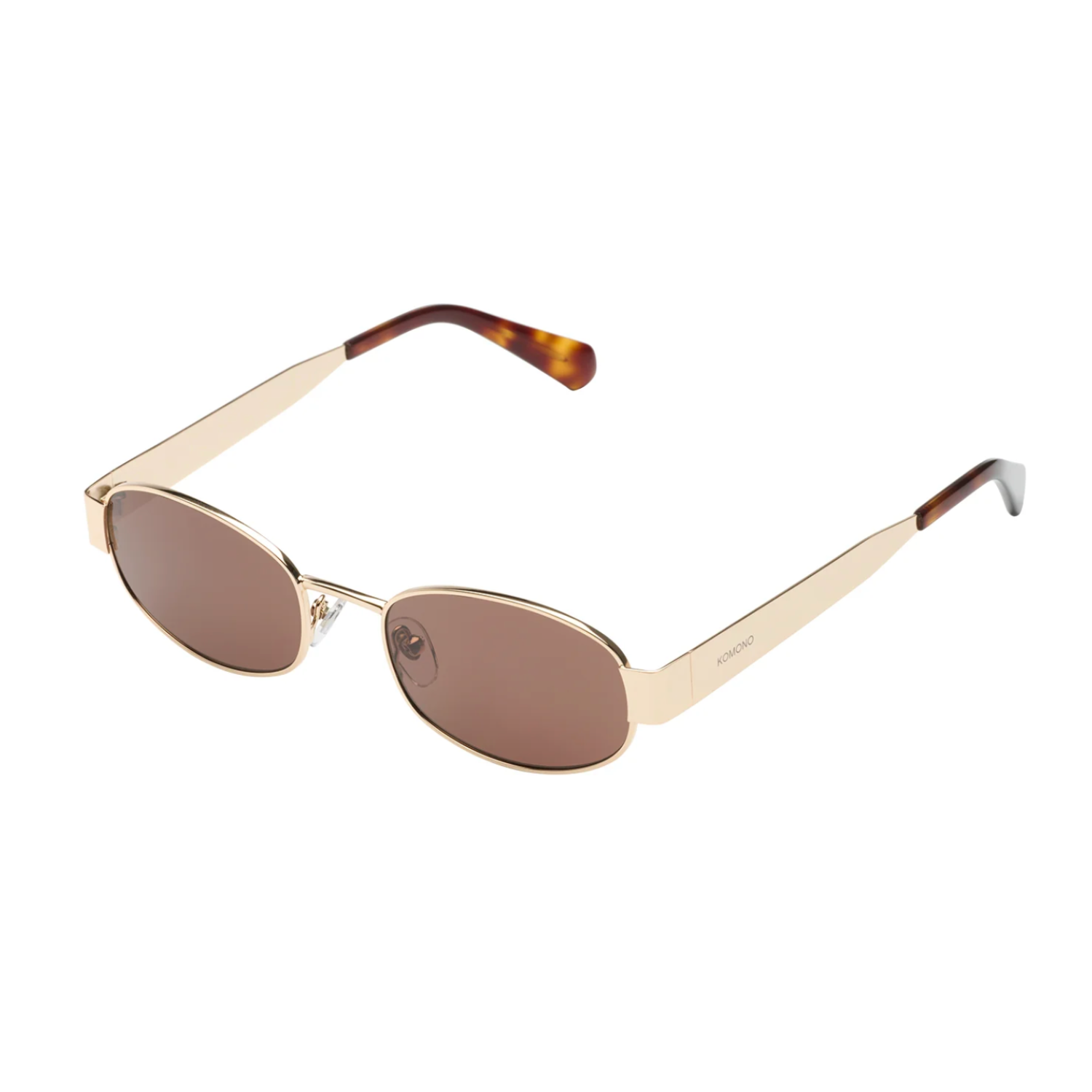 Deze minimalistische gouden zonnebril met ovale glazen, van Kimono, is een verfijnd en tijdloos model dat elegantie en modern design samenbrengt. Het slanke metalen montuur in een zachte goudtint geeft deze zonnebril een lichte, sierlijke uitstraling. Daardoor voelt dit model subtiel aan, maar maakt het toch een duidelijk stijlstatement.