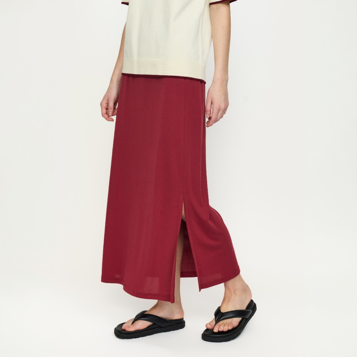 Deze roodroze midi rok is perfect voor zowel casual als geklede looks. Combineer de Ella Midi Skirt met een T-shirt of knit voor een ontspannen outfit of draag hem met een blouse voor een meer verzorgde uitstraling. Voor een complete set kun je de rok perfect combineren met het Ella Boxy T-Shirt, waarmee je een moderne en comfortabele look creëert. De midi lengte geeft de rok een elegante en draagbare uitstraling voor elke dag.