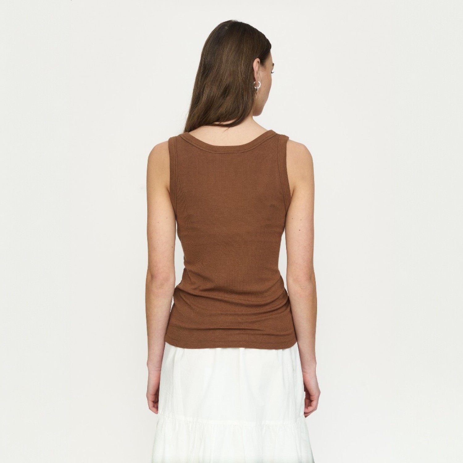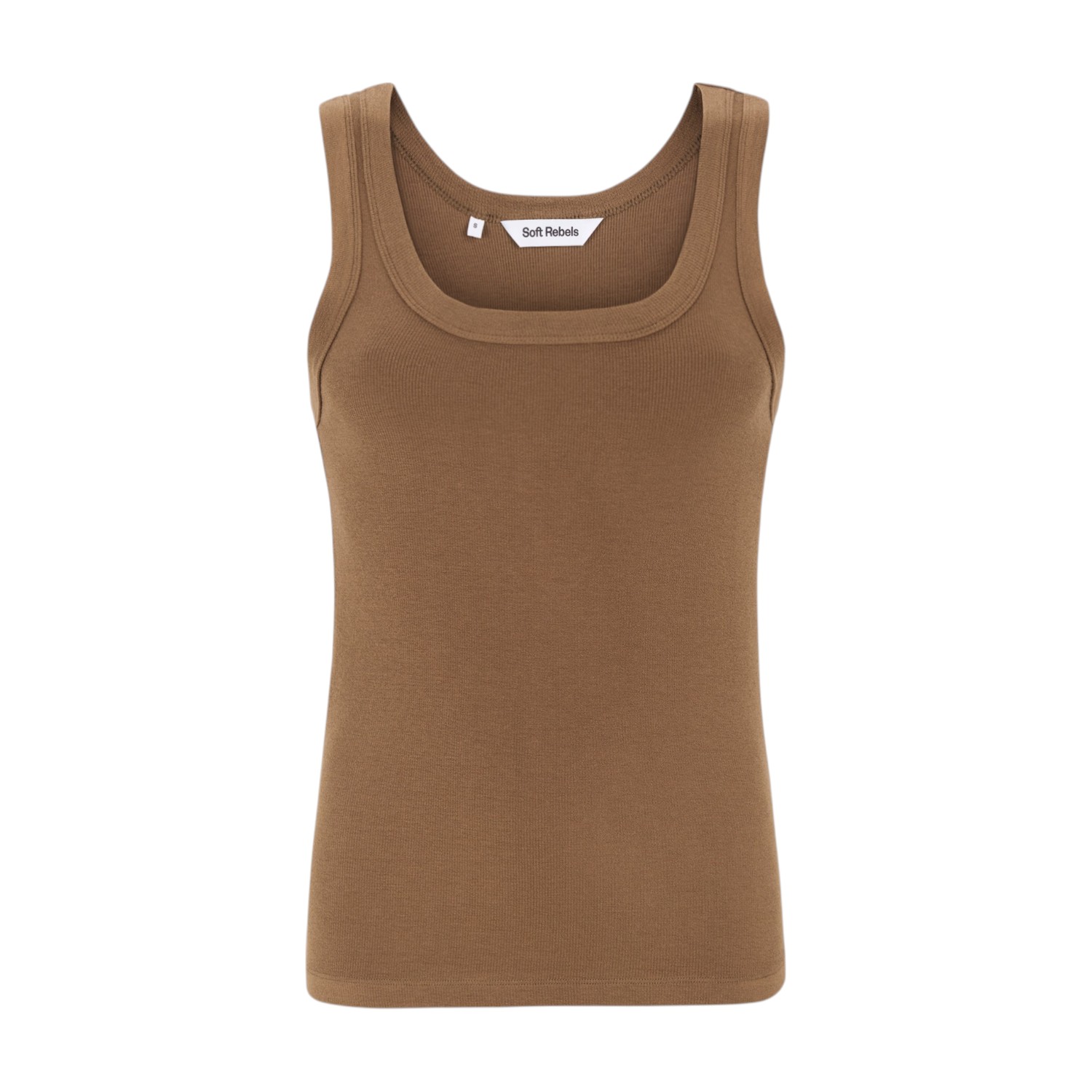 De Fenja Tank Top Bison van Soft Rebels is een tijdloze basic die niet mag ontbreken in je garderobe. De warme bisonkleur geeft deze tanktop een stijlvolle en natuurlijke uitstraling, waardoor hij eenvoudig te combineren is met verschillende outfits.