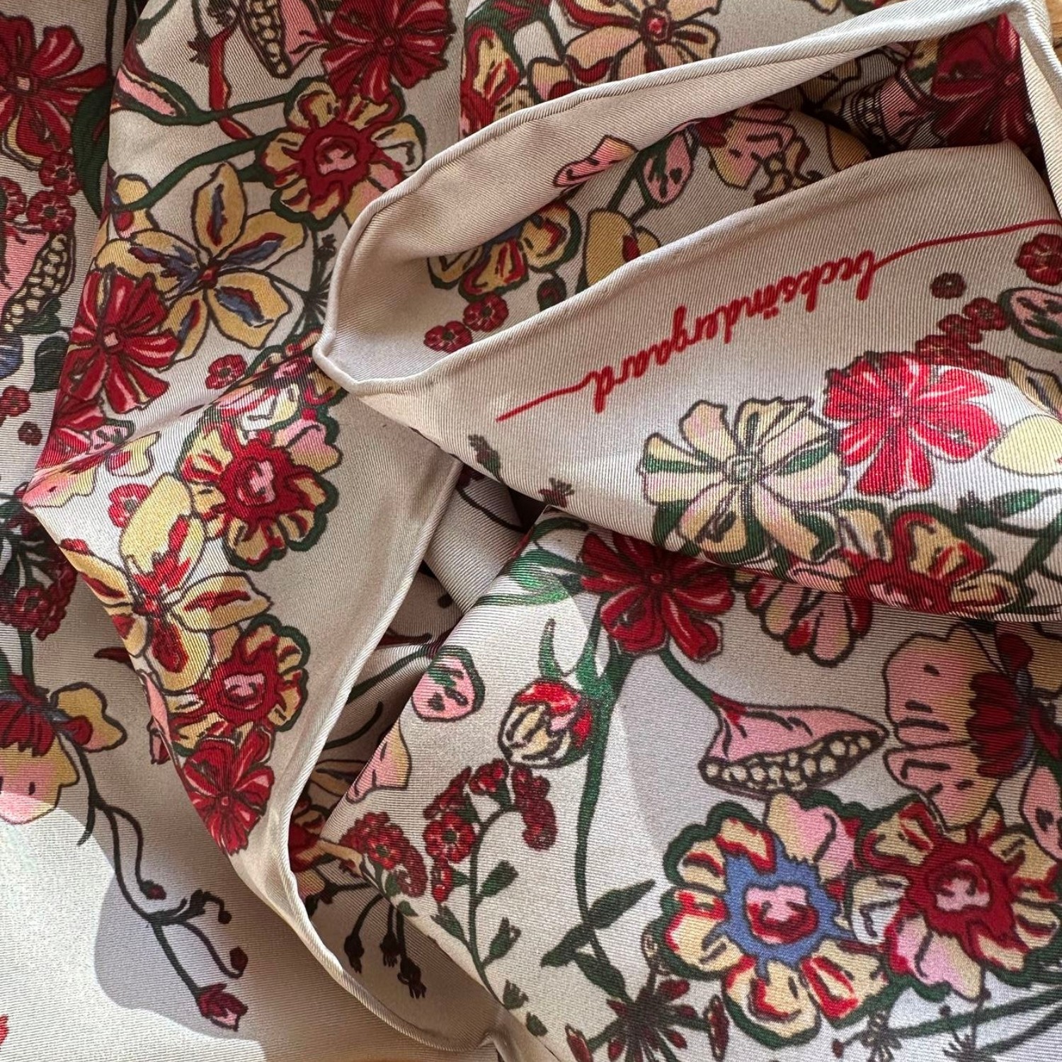 De Floralia Sia Scarf Multi Color van Becksöndergaard is een elegante vierkante sjaal van 65 x 65 cm, gemaakt van 100% zijde. Het kleurrijke bloemenpatroon geeft een lichte en vrouwelijke uitstraling, terwijl de zachte zijde heerlijk comfortabel aanvoelt op de huid.