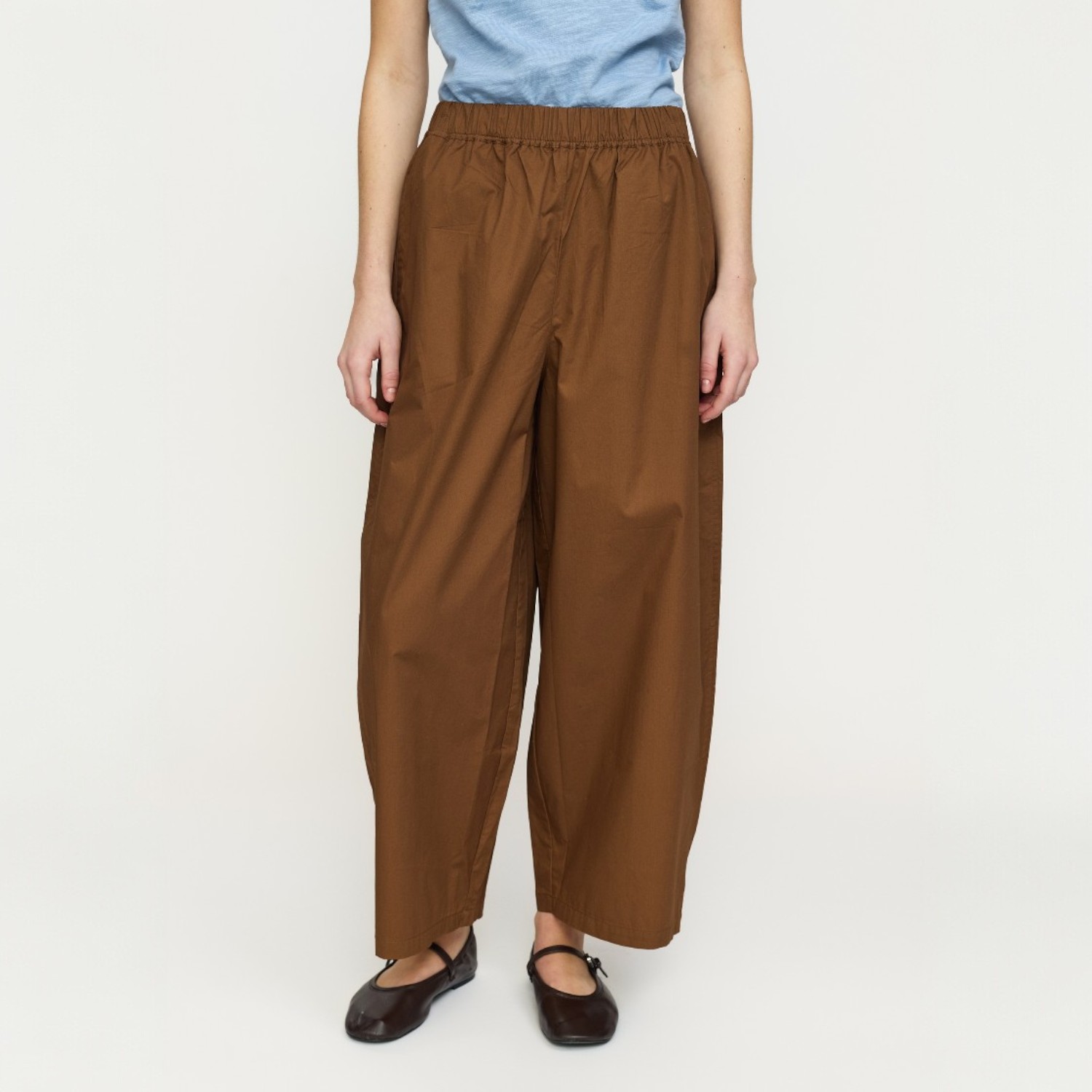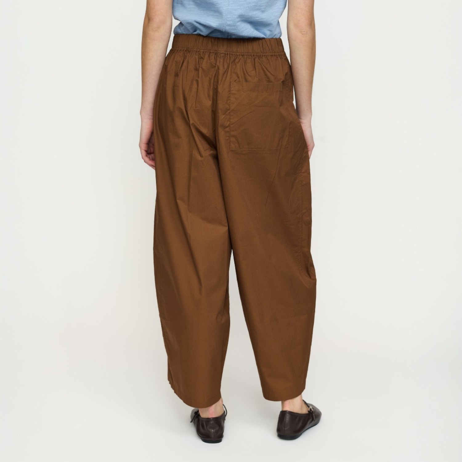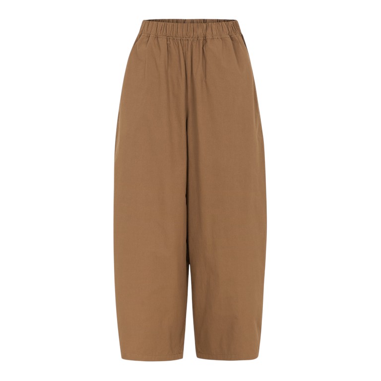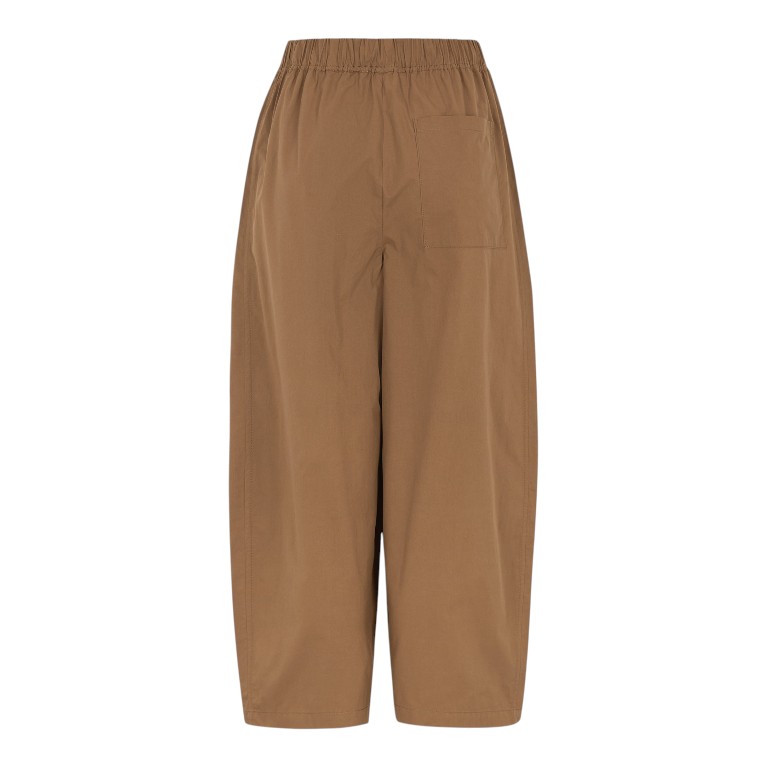 De broek heeft een losse, volumineuze pasvorm met wijde broekspijpen, wat zorgt voor een luchtig en comfortabel silhouet. Deze iets “puffy” vorm geeft de broek een eigentijdse en nonchalante uitstraling, terwijl hij toch stijlvol blijft.