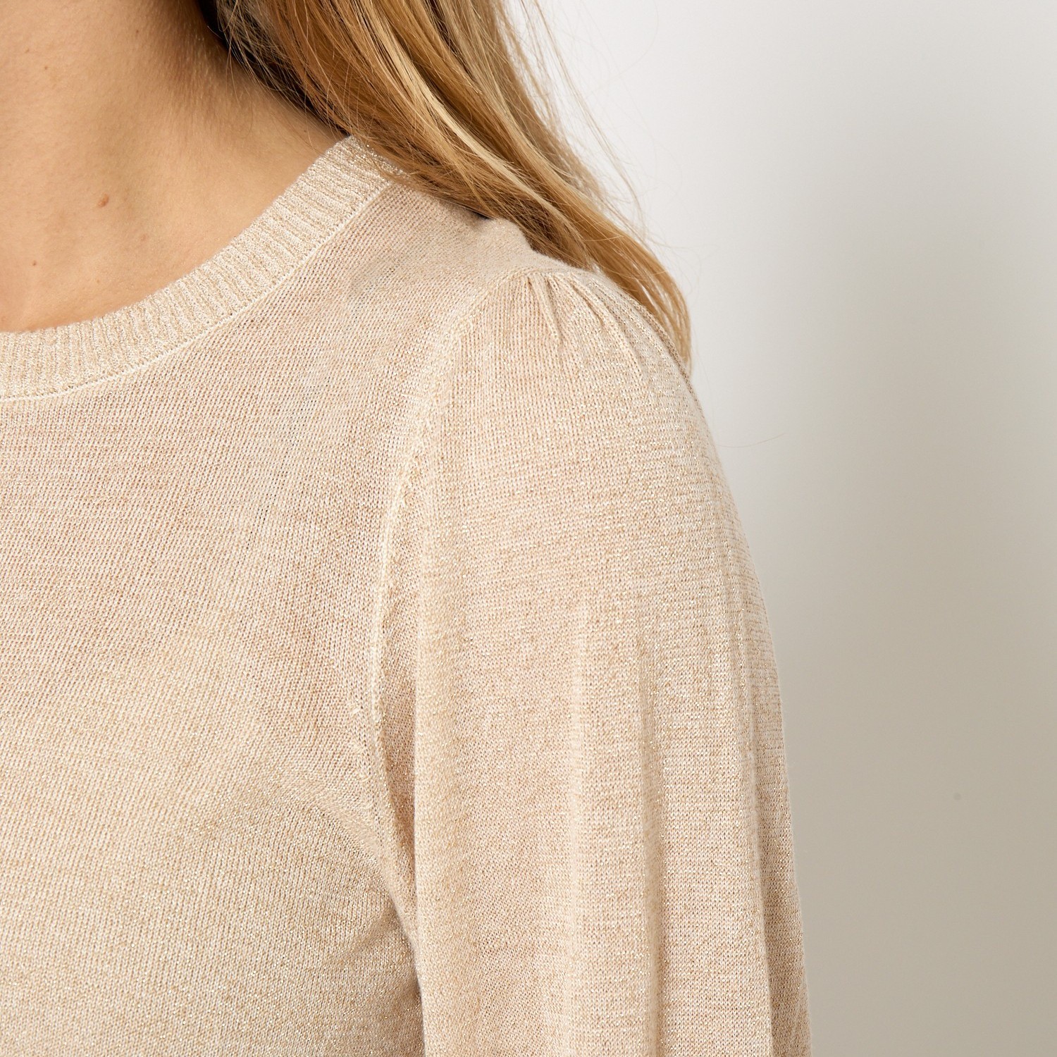 Deze lichte damestrui met metallic details, de Liva Metallic Long Sleeve Pullover Medal Gold van Minus, is een elegante toevoeging aan je garderobe. De wit-gouden kleur wordt versterkt door subtiele metallic accenten die zorgen voor een moderne en feestelijke uitstraling.