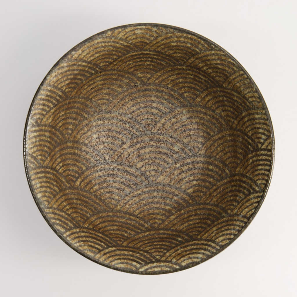 Deze grote bronzen kom combineert functionaliteit met traditioneel Japans vakmanschap. Het Minoyaki keramiek staat bekend om zijn kwaliteit, karakter en levendige glazuur, waardoor elke bowl nét een beetje uniek is. Gebruik deze kom op zichzelf voor een statement presentatie of combineer hem met andere Minoyaki items voor een stijlvolle, complete set.