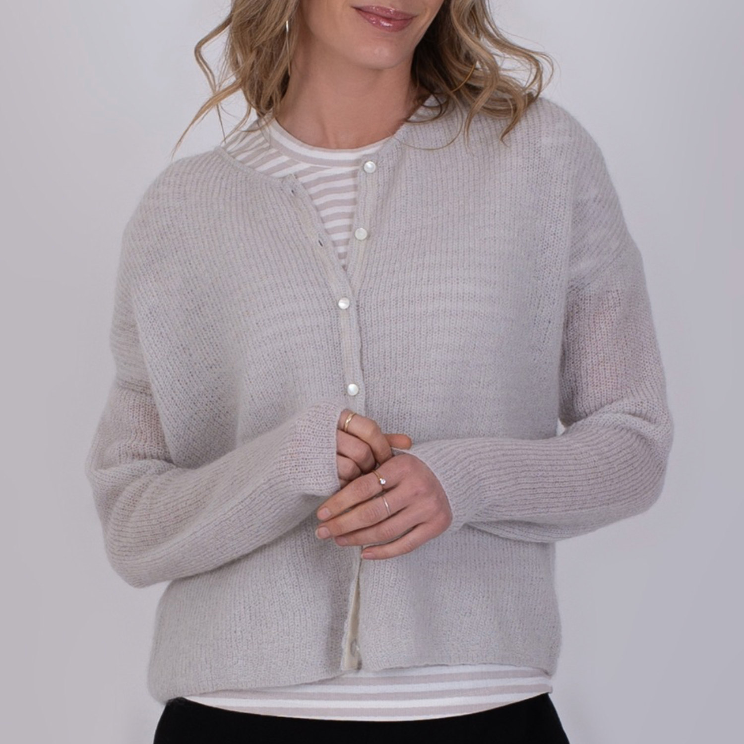 Lichtgrijze cardigan luxe wolmix