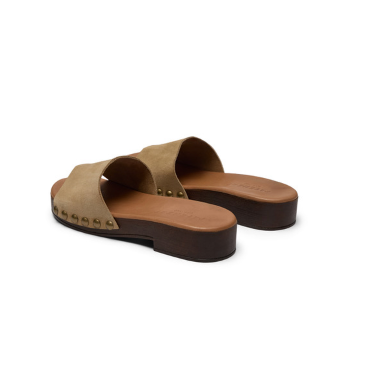 Het hoogwaardige suède voelt zacht aan en vormt zich subtiel naar je voet. Bovendien zorgt het leren voetbed voor extra comfort, waardoor je deze instappers de hele dag met plezier draagt. De stevige, donkerbruine zool met subtiele studs langs de rand geeft het ontwerp een stoer accent. Hierdoor ontstaat een mooie spanning tussen vrouwelijk en robuust – precies wat Pavement zo sterk maakt in haar ontwerpen.