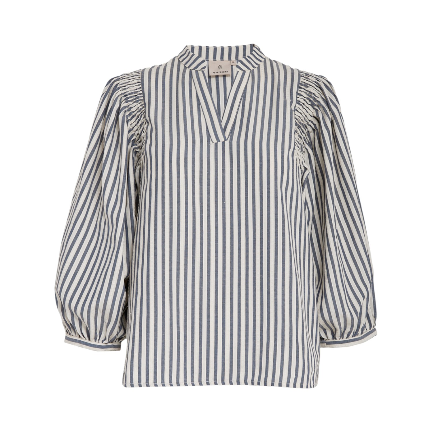 De Ninka Blouse Whitecap Grey Stripe van Peppercorn is een stijlvolle dames blouse met een frisse, tijdloze uitstraling. Het fijne streeppatroon in grijs op een Whitecap basis geeft de blouse een rustige en moderne look. Dankzij de comfortabele pasvorm en soepele stof is dit een veelzijdig item voor zowel dagelijks gebruik als meer verzorgde momenten.