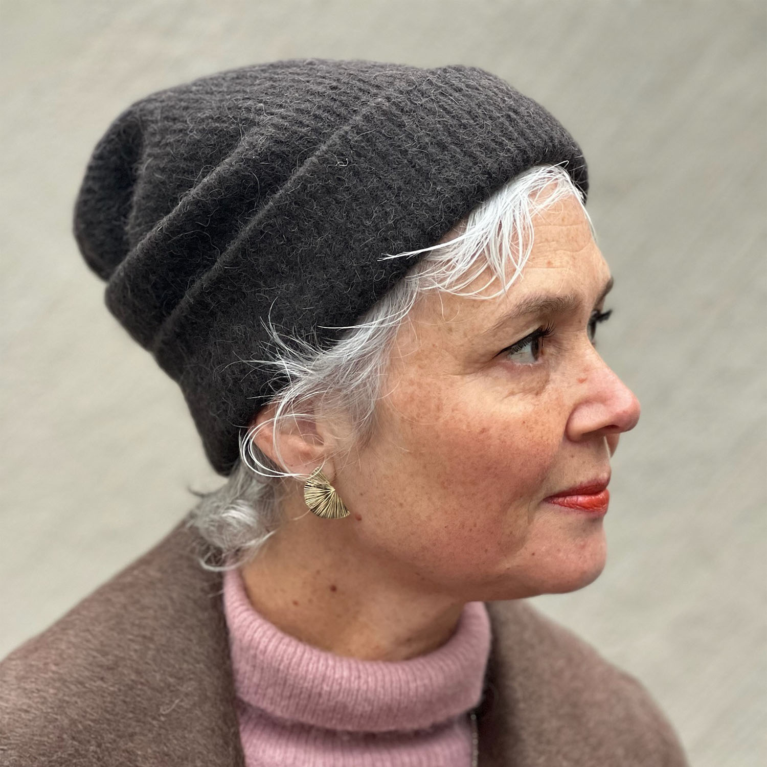 De Nor Hat in de kleur Choclate Torte, van het label Samsøe Samsøe. Een leuk muts die is gebreid van een zachte stof van alpaca en merinowol. De ribstructuur zorgt voor een fijne pasvorm.
