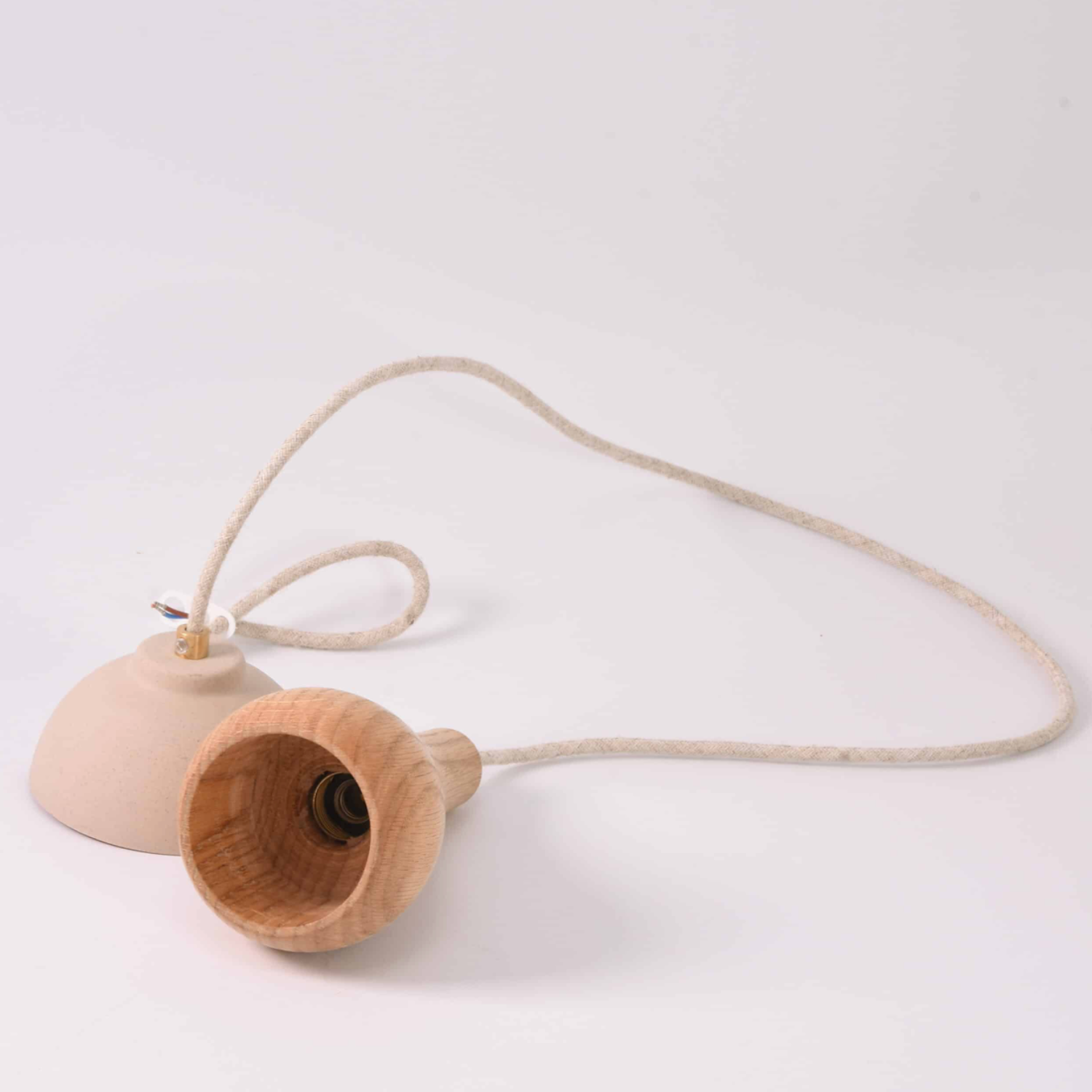 Linnen snoer en zandkleurige porseleinen plafondkap