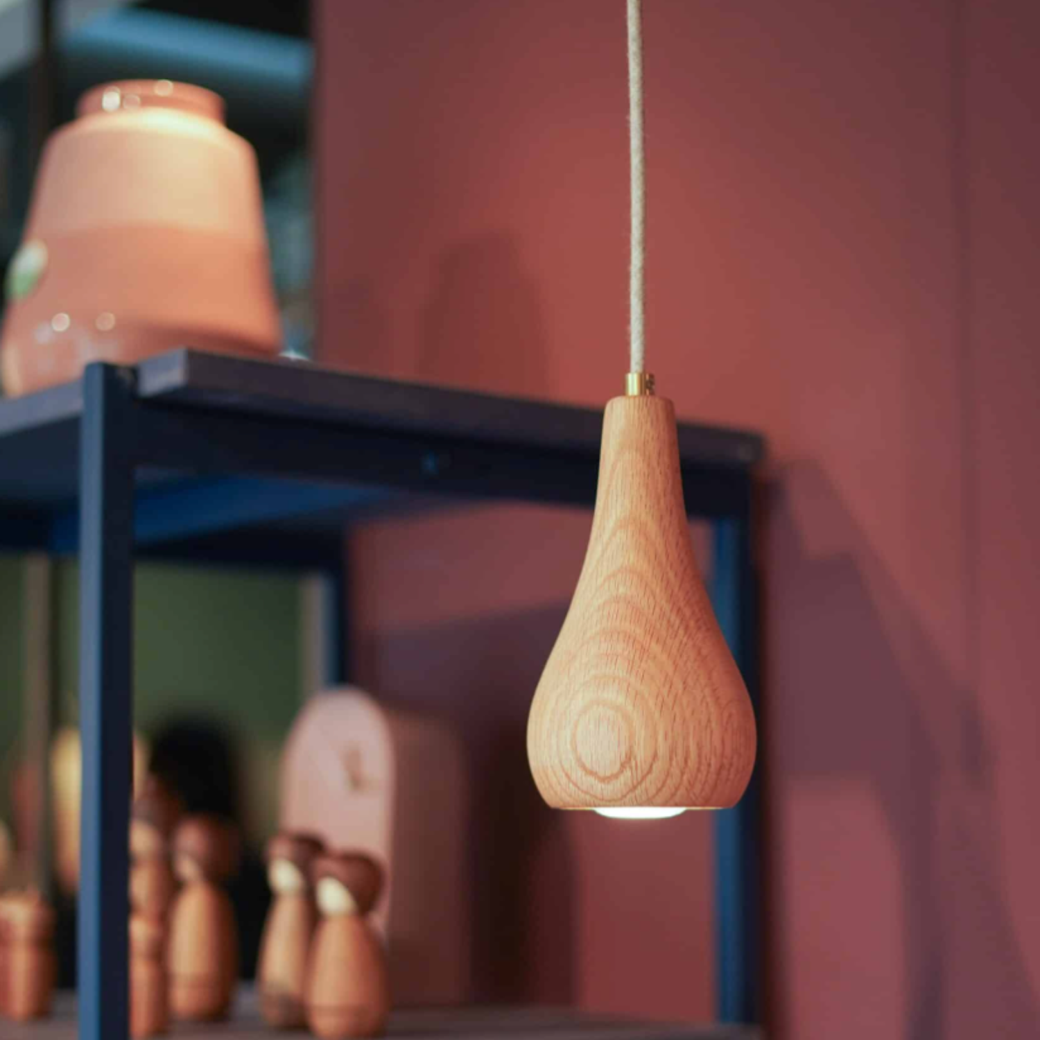 De compacte afmeting maakt deze design hanglamp subtiel maar vol karakter. In combinatie met een warme E14 lichtbron ontstaat een sfeervolle, zachte gloed die het eikenhout extra tot leven brengt.