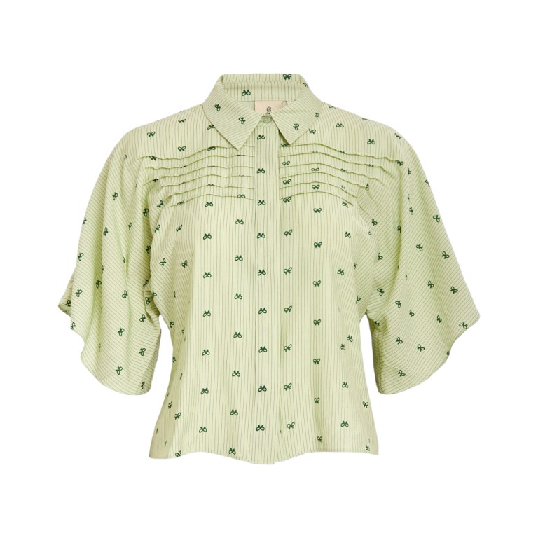 De Osa Batsleeve Shirt Nile Green Print van Peppercorn is een opvallende blouse met een speelse en moderne uitstraling. De frisse nile green print geeft het shirt een levendige en stijlvolle look, perfect om je outfit net dat beetje extra te geven.