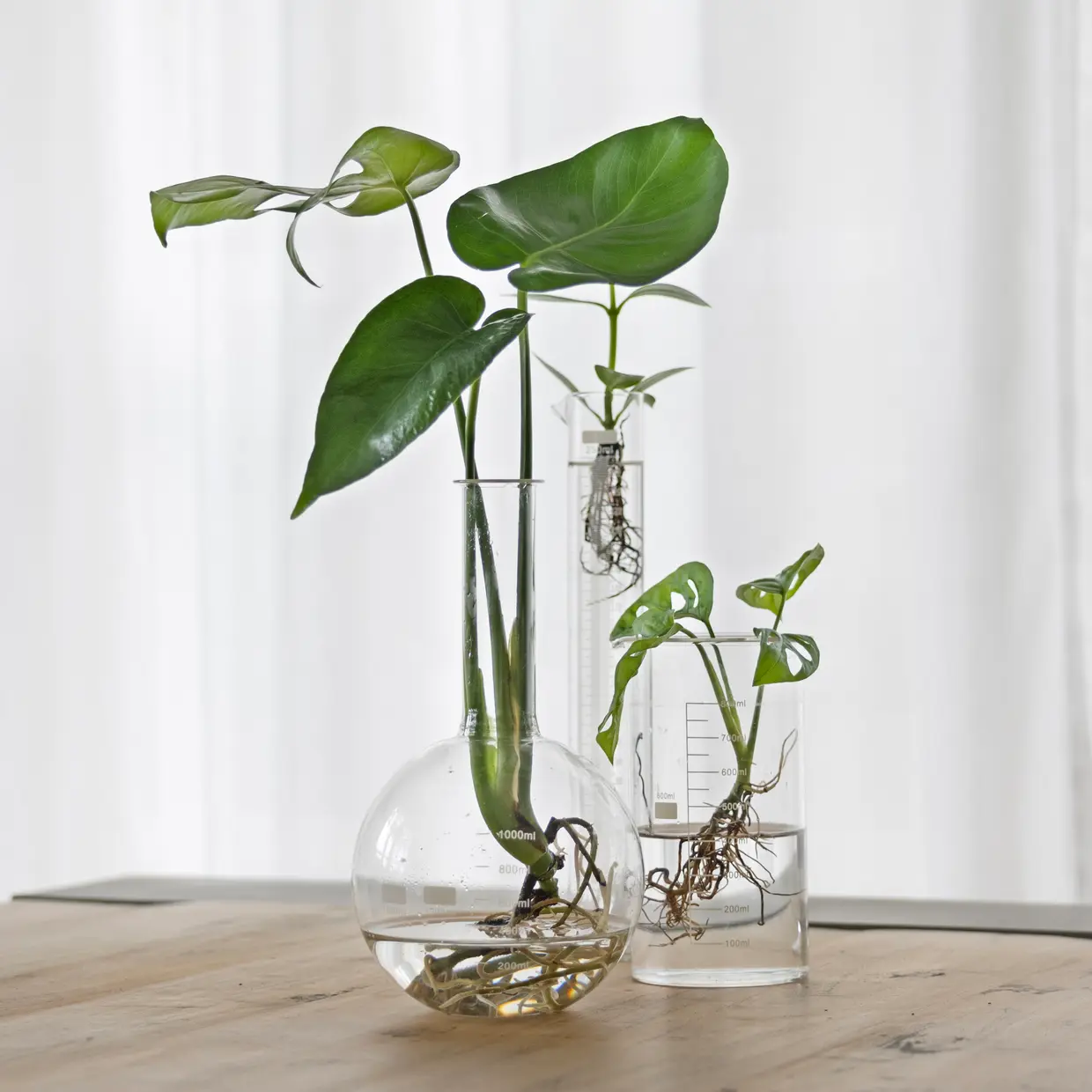 Dankzij het transparante glas kun je de wortels goed volgen en weet je precies wanneer het tijd is om water bij te vullen. Een eenvoudige, stijlvolle manier om planten te stekken en de natuur direct in huis te halen.