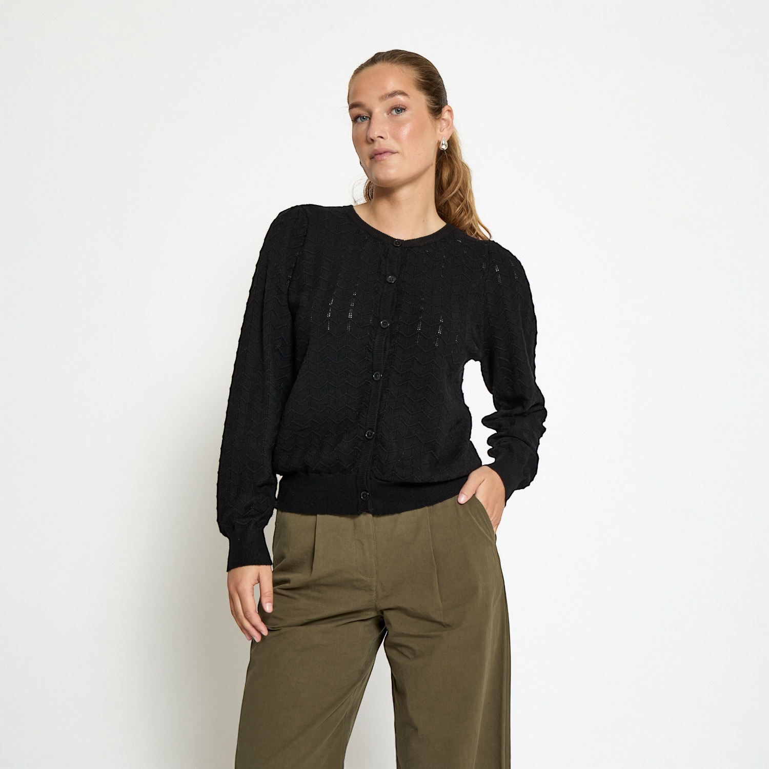 De Rosy Cardigan in de kleur Black van Peppercorn is een vrouwelijke knit cardigan. De zachte stof en kleur maken het een ideaal stuk voor zowel casual als meer geklede dagen – zwart combineer heerlijk met veel andere kleuren! Perfect te combineren met je favoriete jeans, rok of pantalon voor een moeiteloos stijlvolle look.