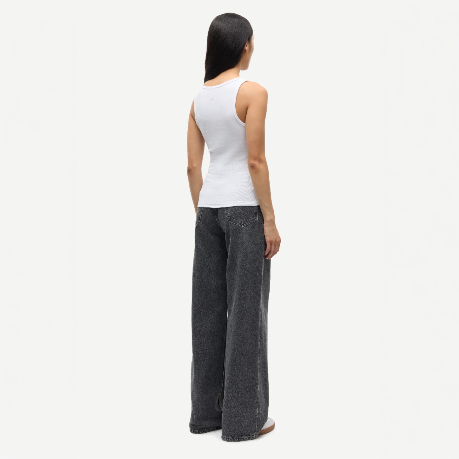 De Saamanza Tank Top White van Samsoe Samsoe is een stijlvolle witte dames top met een minimalistisch en modern design. De soepele, zachte stof voelt comfortabel aan en zorgt voor een flatterende pasvorm die makkelijk combineert met verschillende outfits. Door de klassieke witte kleur en rustige snit is deze tank top een veelzijdige basis in je garderobe.