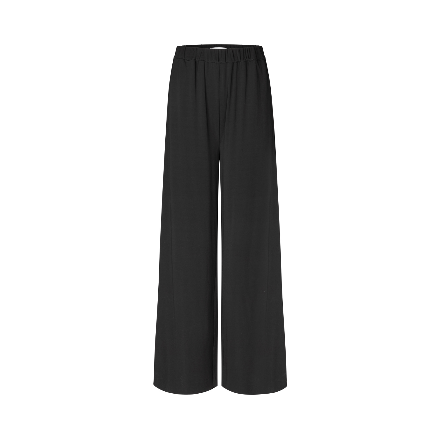 De broek heeft een elastische tailleband die zorgt voor een comfortabele pasvorm en een mooie, subtiele plooival. Daardoor valt de stof soepel langs het lichaam en creëert het een ontspannen silhouet met een verfijnde uitstraling. Bovendien geven de wijde pijpen de broek een moderne, minimalistische look die zowel luchtig als stijlvol aanvoelt.