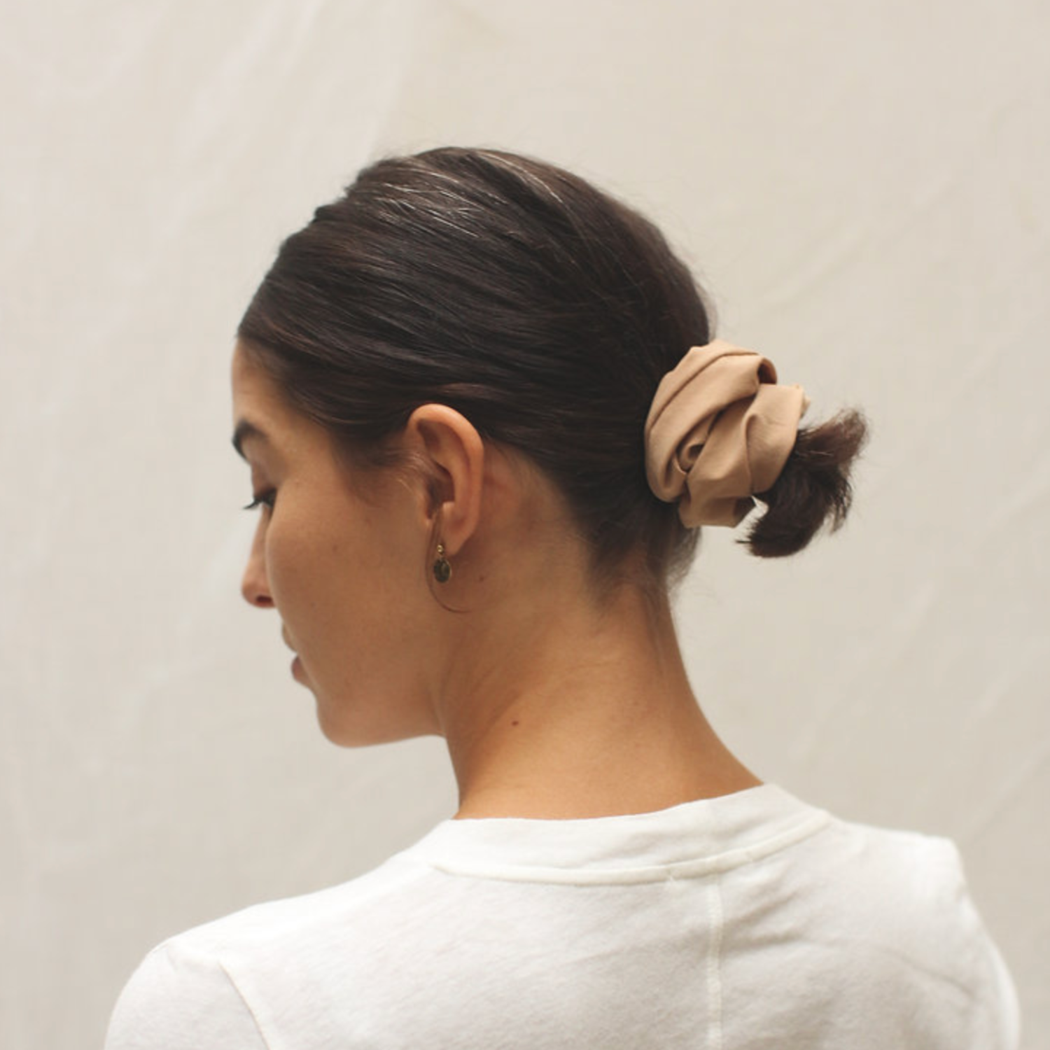 Wat deze scrunchie bijzonder maakt, is de balans tussen eenvoud en functionaliteit. Hij houdt het haar comfortabel bijeen en voelt tegelijkertijd als een bewuste stylingkeuze. Daarom is hij geschikt voor dagelijks gebruik, maar net zo mooi bij een meer verzorgde, serene look.