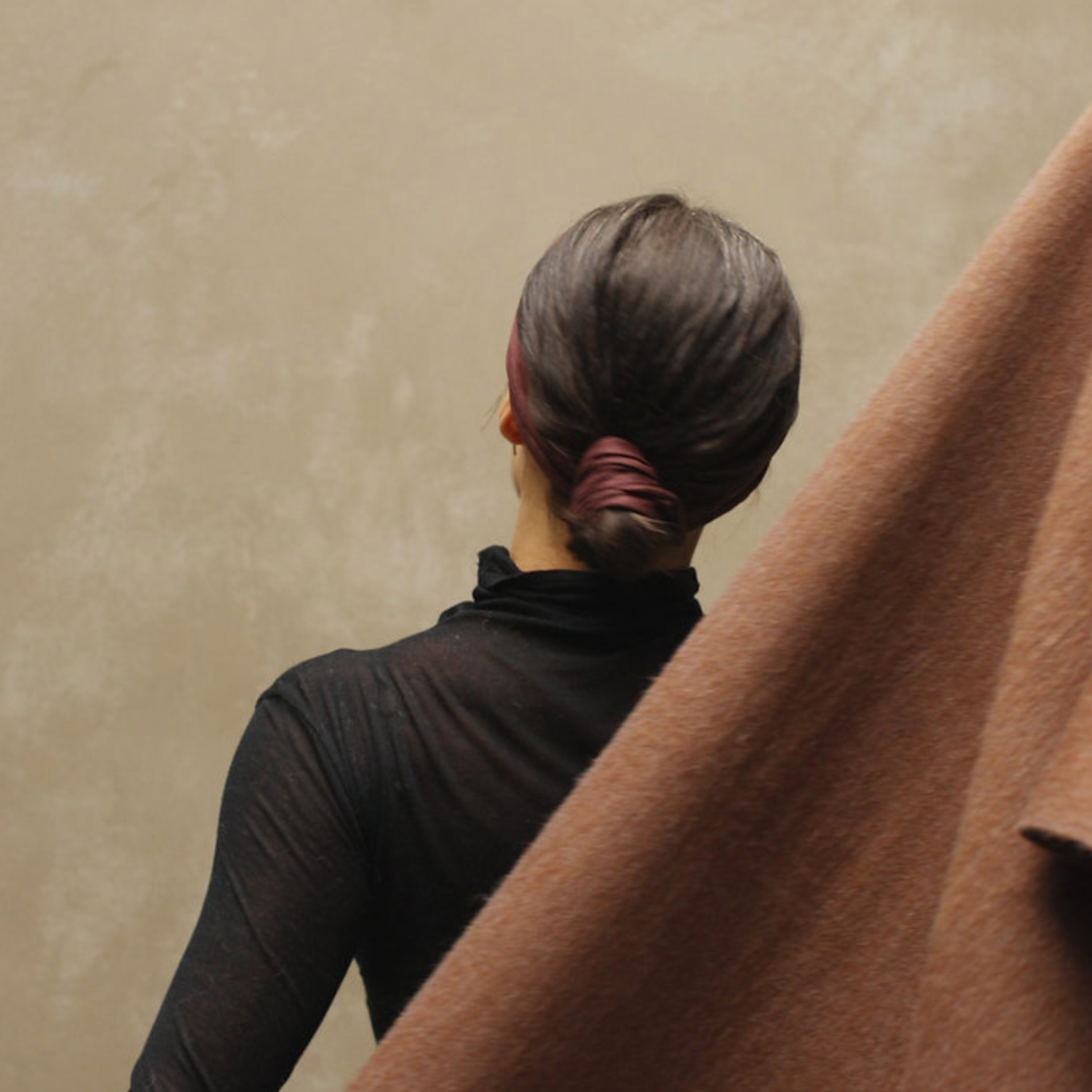 De scrunchie is gemaakt van linnen, een natuurlijk materiaal met een matte, zachte structuur. Juist die textuur zorgt voor een nonchalante uitstraling die mooi in balans is met het diepe kleurgebruik. Daardoor oogt dit haaraccessoire ingetogen en doordacht, niet modieus om de trend maar tijdloos in zijn vorm. Daarom past hij net zo goed bij een dagelijkse outfit als bij een meer verzorgde, avondlijke look.