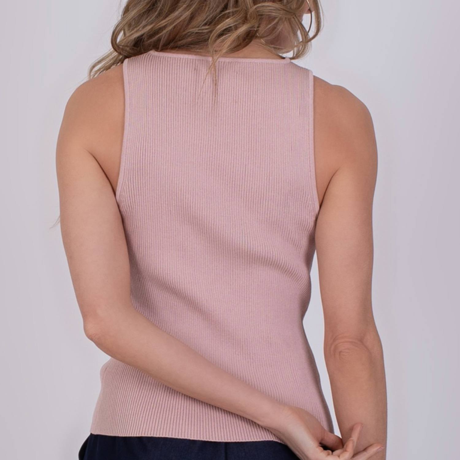 De zachte, gebreide structuur voelt prettig aan op de huid en zorgt ervoor dat de top mooi in vorm blijft. Bovendien valt de pasvorm soepel langs het lichaam, wat bijdraagt aan een elegante en ontspannen uitstraling. Daarom kun je deze top zowel los dragen als combineren met een vest of blazer voor een gelaagde outfit. Dit maakt het een veelzijdig item dat je moeiteloos van casual naar meer gekleed tilt.