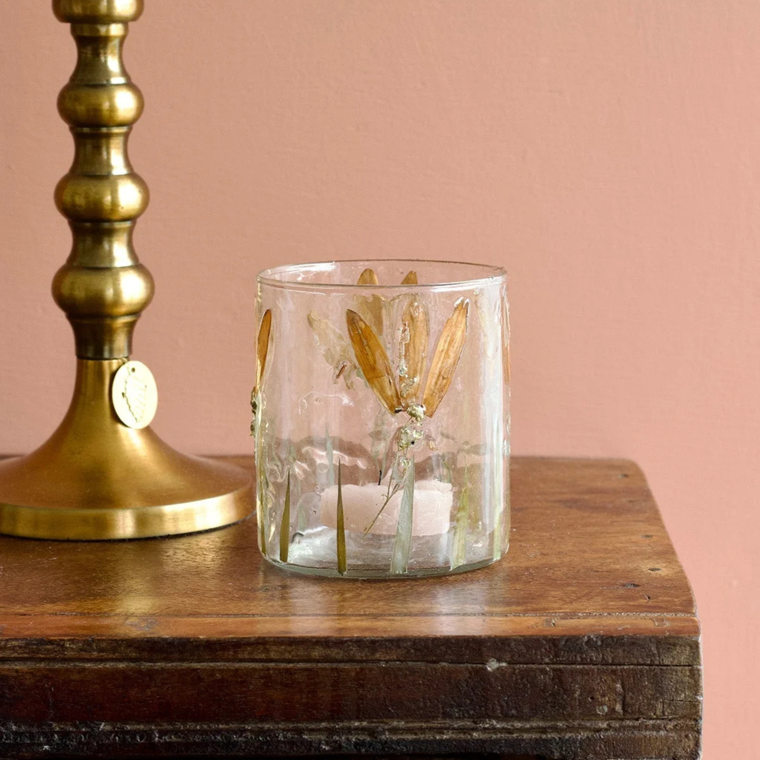 De Theelichthouder Low Bloom van De Weldaad is een klein, verstild object dat licht op een zachte en natuurlijke manier verspreidt. Deze lage theelichthouder met bloemen is zo ontworpen dat het kaarsje dicht bij het glas staat, waardoor het licht laag blijft en rustig over het oppervlak glijdt. De echte gedroogde bloemen zijn subtiel zichtbaar in het glas en voegen textuur toe zonder op de voorgrond te treden. Daarom is deze houder perfect voor wie sfeer wil creëren zonder nadruk.