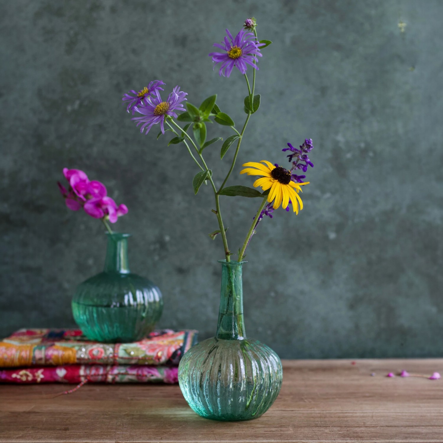 Een charmant vaasje dat perfect is voor een enkele wilde bloem, een stekje of als speels accent op een plank, tafel of vensterbank. Klein van formaat, maar groots in uitstraling.