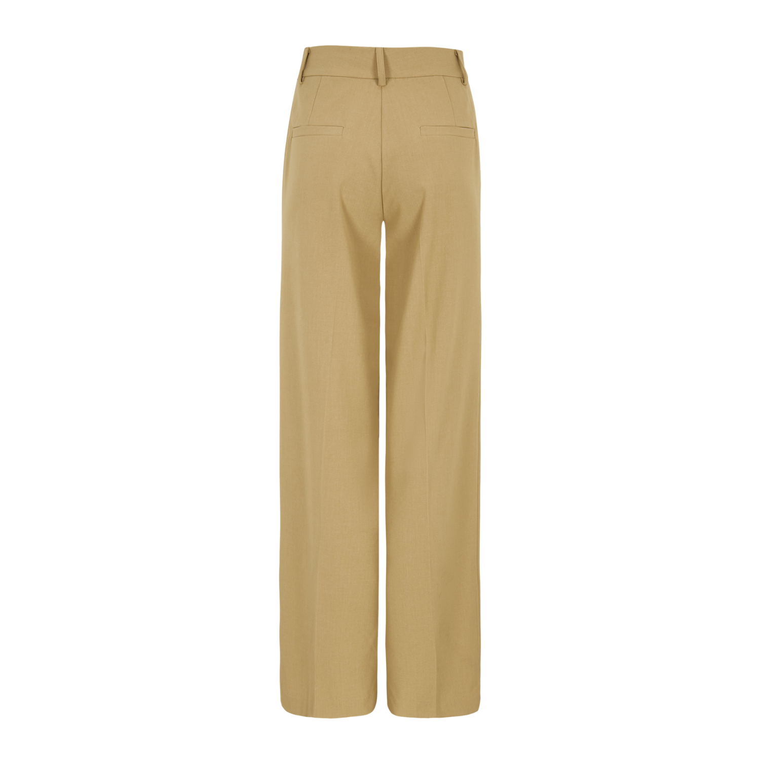 Dankzij de minimalistische afwerking en het rustige kleurenpalet vormt deze beige pantalon met wijde pijpen een sterke basis in je kledingkast.